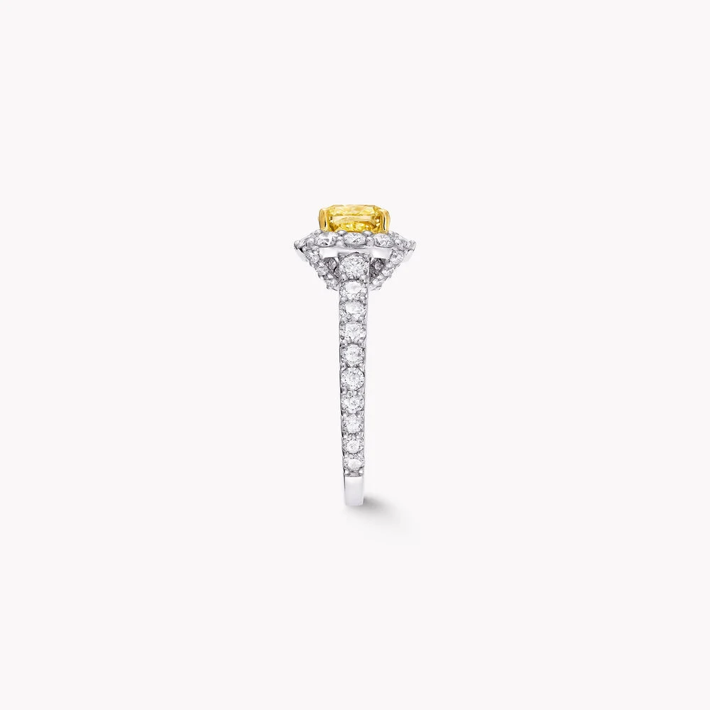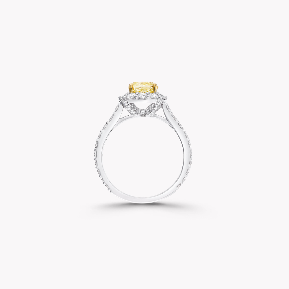 A cushion cut Fancy Yellow diamond displaying the most delicate of hues is the breathtaking centrepiece in our yellow and white gold Icon engagement ring. With its soft, rounded edges, the timeless silhouette of the cushion cut makes an exquisitely feminine statement, encircled by a halo of pavé white diamonds. With a legacy of cutting and polishing many of the world’s most fabulous yellow jewels, Graff has an enduring affinity for yellow diamonds, which have become synonymous with the House.